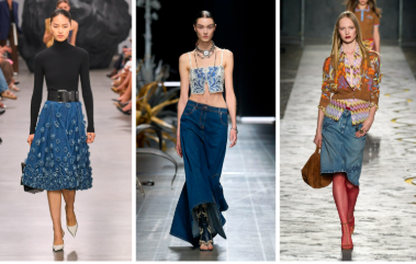Barrel legs, cargo styles, dark washes, and patchwork jeans are leading the way. Denim skirts are also making a big comeback.