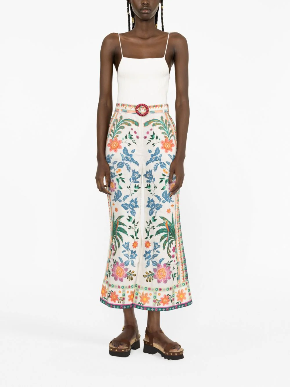 Add a playful twist to your summer looks with Zimmermann’s Ginger Floral Print Linen Flared Trousers. Zimmermann’s signature elegance shines through, while the linen fabric allows for effortless movement.